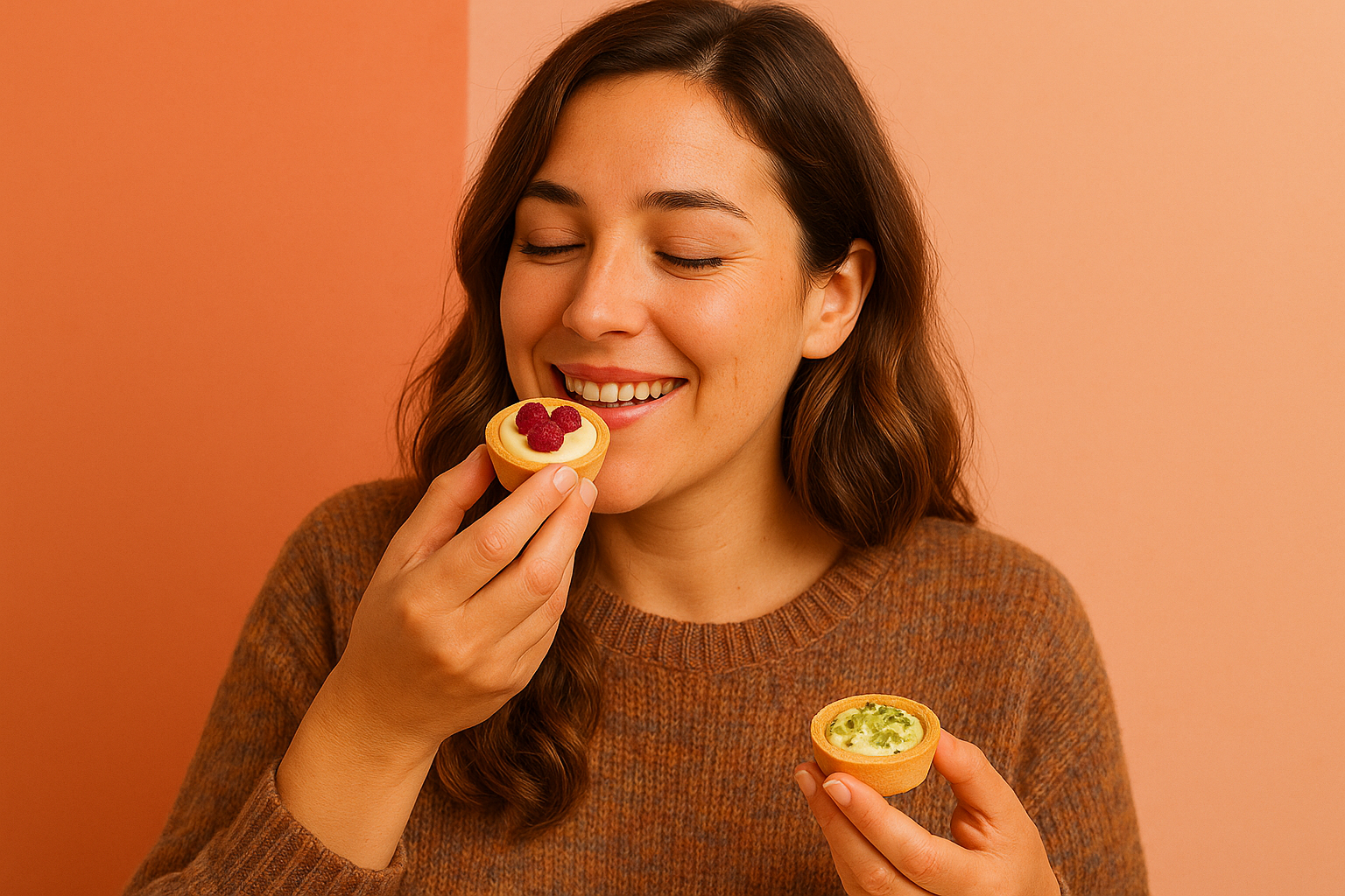 Laat je verrassen door onze handgemaakte tartelettes, stuk voor stuk met aandacht voor smaak gemaakte one-bite gebakjes.